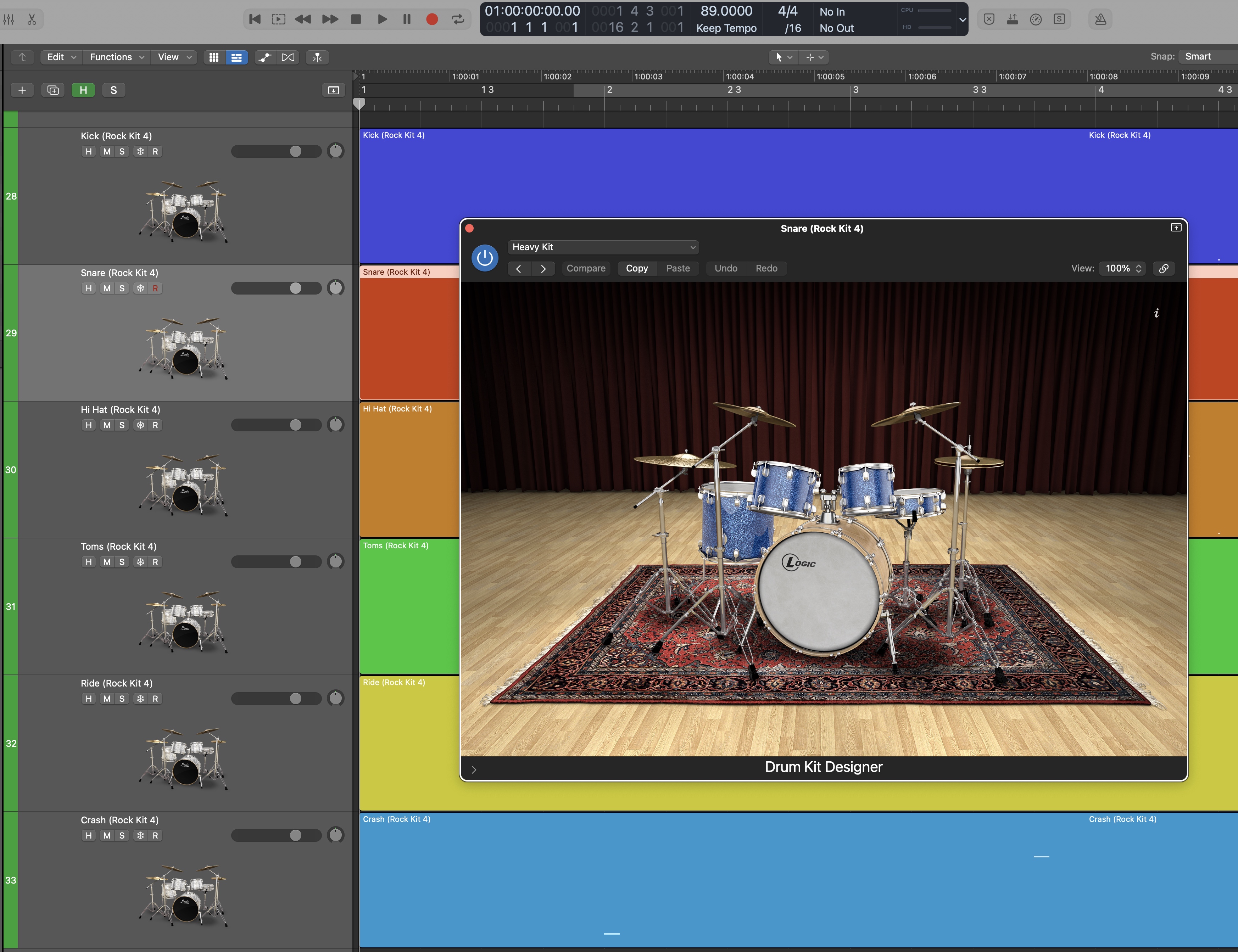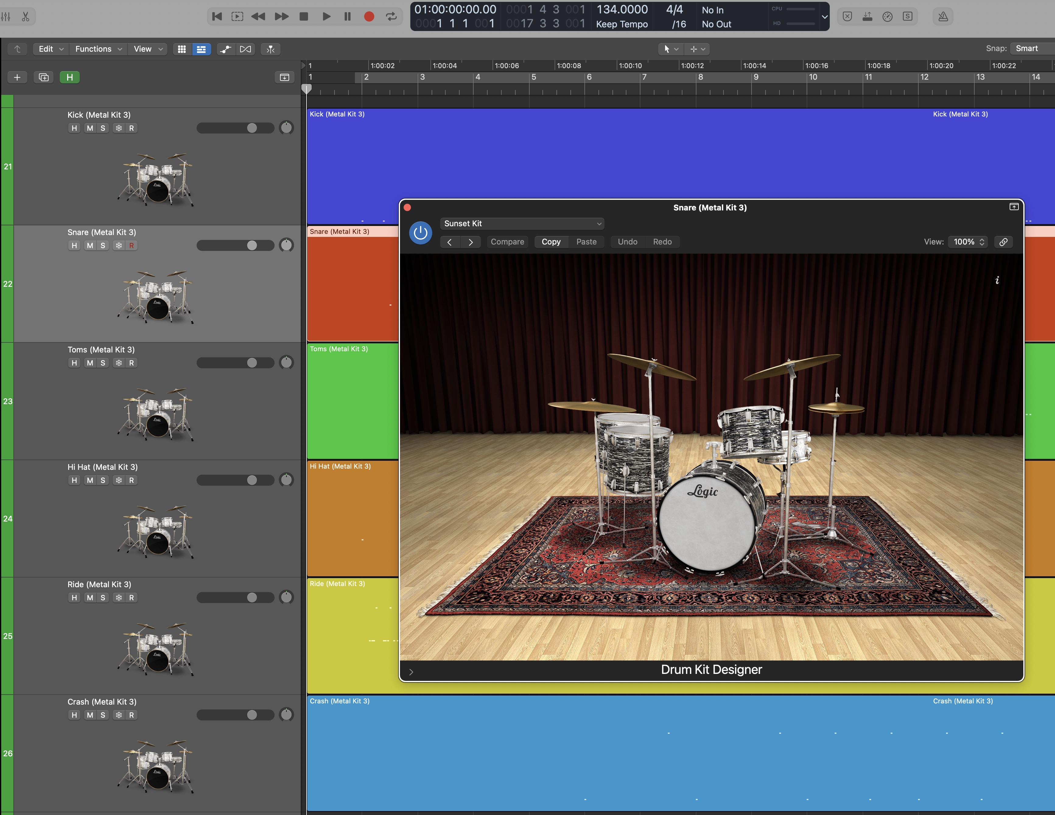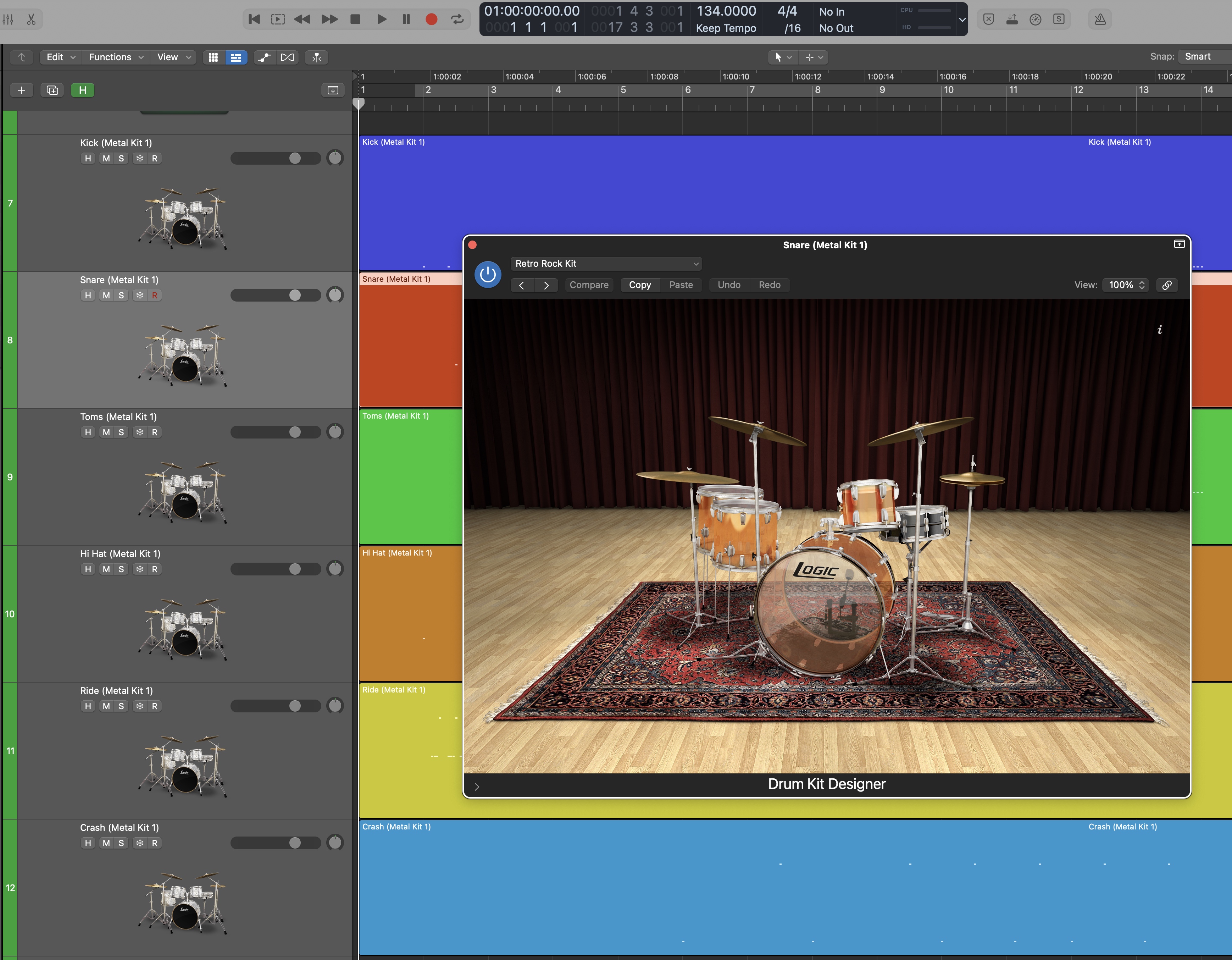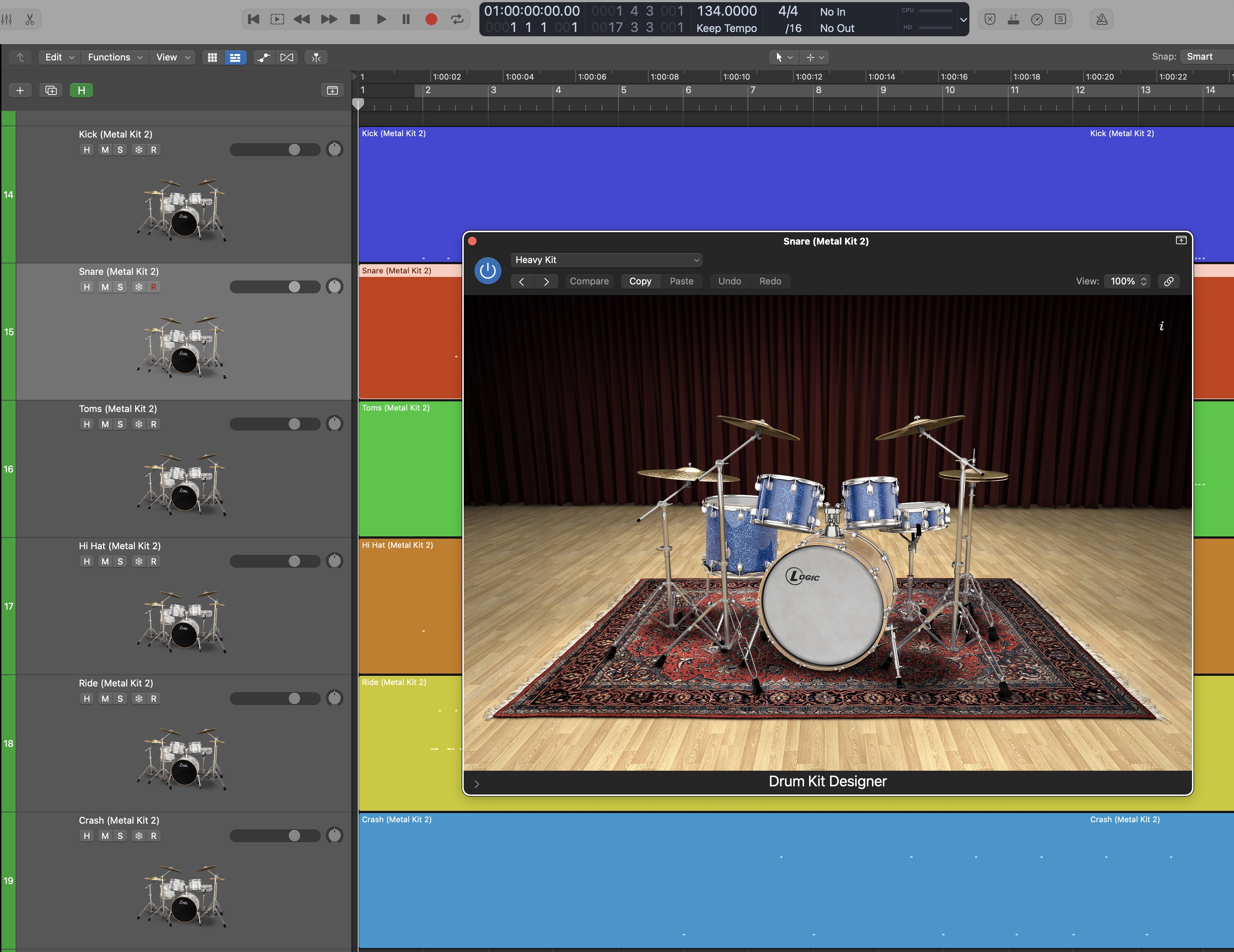 Auxeus Drums are 8 custom-made, mix-ready drum kits for Logic Pro, using the built-in Drum Kit Designer. 4 drum kits for Rock and 4 for Metal.